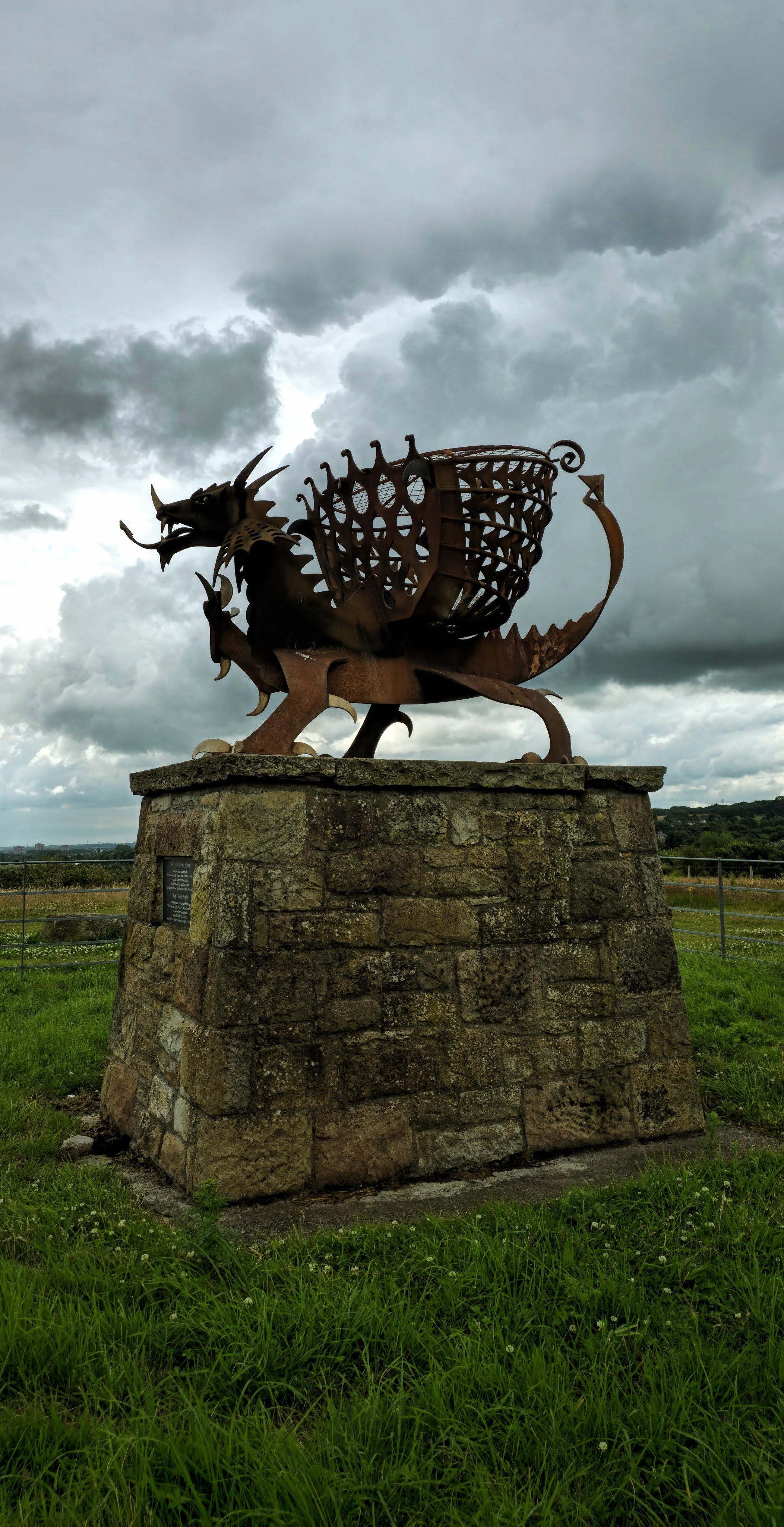 Ścieżka wiedzie na niewielki pagórek, tutaj na polance podziwiamy pięknie wykonany posąg walijskiego smoka. Bagillt Beacon to oczywiście symboliczna pochodnia jubileuszowa i została tu postawiona w roku otwarcia trasy w 2012 roku.