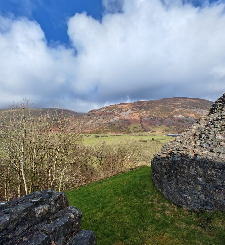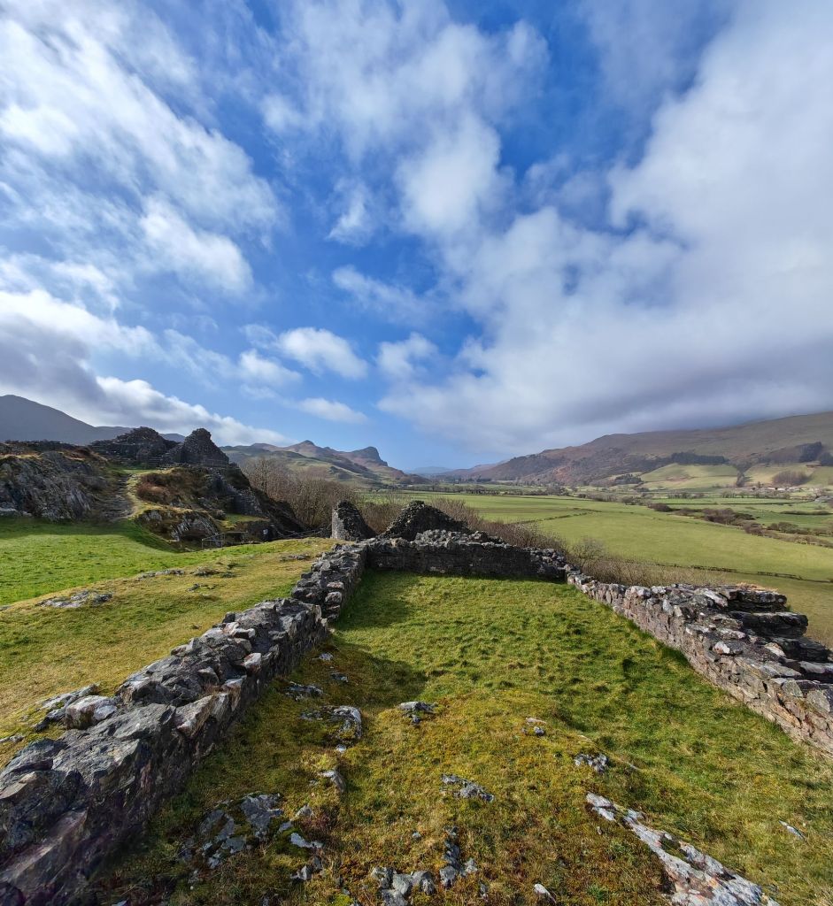 Ruiny zamku wznoszą się na skalistym wzgórzu, skąd roztacza się widok na dolinę Afon Dysynni i majestatyczne szczyty Snowdonii. Nawet teraz, gdy z zamku pozostały już tylko kamienne mury i fragmenty baszt, nietrudno sobie wyobrazić, jak imponująca była to forteca. Gdy stałam na jego murach, podziwiając rozciągające się wokół łąki i wzgórza, zrozumiałam, dlaczego książę Llywelyn ap Iorwerth (Llywelyn Wielki) wybrał właśnie to miejsce na swoją twierdzę.